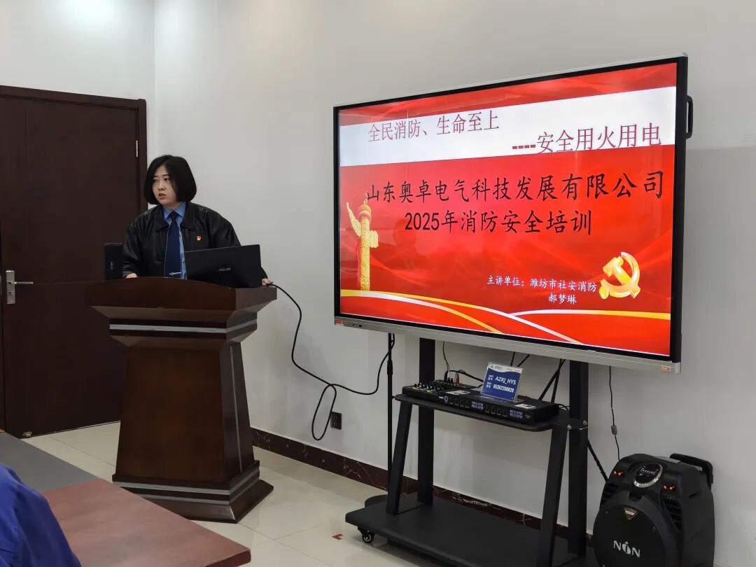 為進一步強化全體員工的消防安全意識,提升火災(zāi)應(yīng)急處置與自救互救能力,2025年11月7日,山東奧卓電氣科技發(fā)展有限公司特邀濰坊市社安消防的郝夢琳教官開展消防安全知識培訓,公司各部門員工代表參與本次培訓。
