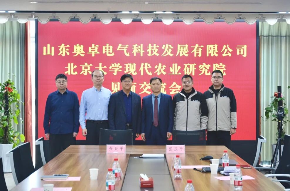 2025年12月31日,山東奧卓電氣科技發(fā)展有限公司董事長張慶平、常務(wù)副總張曉一行赴北京大學(xué)現(xiàn)代農(nóng)業(yè)研究院參觀交流,雙方深度洽談產(chǎn)業(yè)賦能合作事宜,并正式簽訂“農(nóng)業(yè)科技創(chuàng)新與產(chǎn)業(yè)合作框架協(xié)議”。北大現(xiàn)代農(nóng)業(yè)研究院副院長張興平、智慧農(nóng)業(yè)實(shí)驗(yàn)室副研究員王昕、智慧農(nóng)業(yè)研究室資深工程師尹兆剛熱情接待并出席簽約儀式。